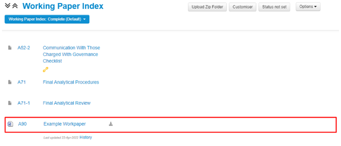 You will now see that your hyperlink has been added to your document – simply left-click on this and a new tab will open within your browser with the workpaper you hyperlinked to.