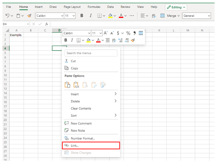 Adding a Hyperlink on Office Online