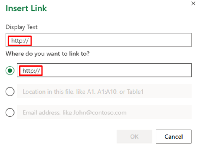 - Once the hyperlink option is opened be sure to delete the pre-existing Http:// otherwise this may cause issues with your copied URL.