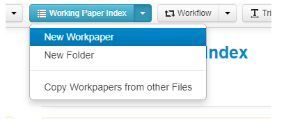 1. Select the "New Workpaper" option from the Working Paper Index dropdown;
