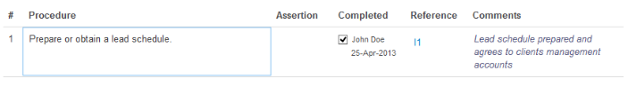 For procedures requiring large amounts of text we recommend uploading a word or other documents to the Working Paper Index and referencing the procedure to the document