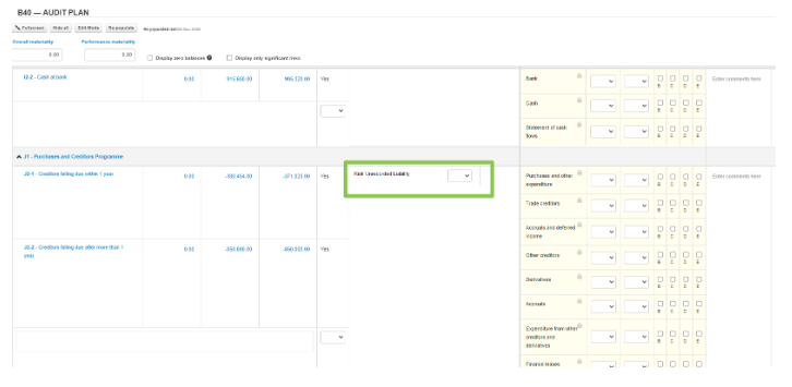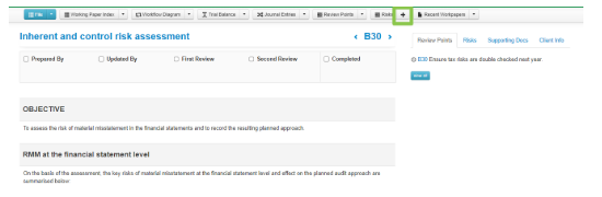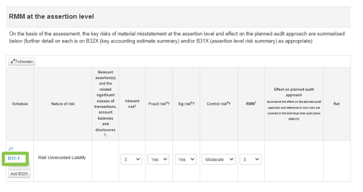 If we now create an assertion level risk instead, there is additional functionality added to the B30 workpaper.