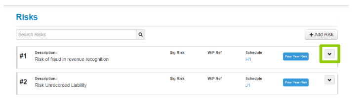 Select the dropdown option found next to the Prior Year Risk tag to expand the risk;