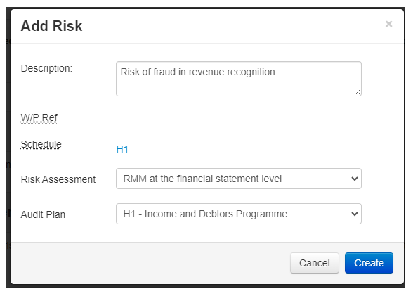 3. Use the description box to write out the details of your risk. You can reference the risk to a specific workpaper and a lead schedule the risk could be affecting.