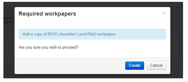 Select which one you would like to create and click to add it. You will then be prompted to ensure you wish to generate the correct workpaper. Click Create.