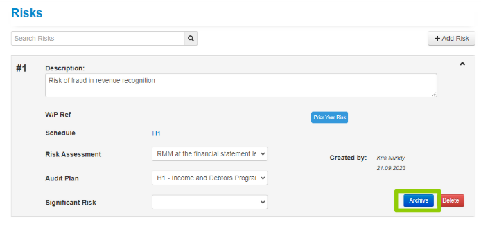 If a risk is no longer required, you are able to archive these risks by doing the following: