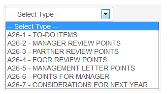 | Management Letter Notes | A category to list all potential issued to be raided in the Management Letter to the client. |