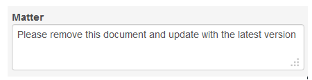 - Insert a description of the review point or action item required into the Matter box;
