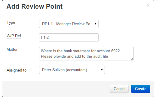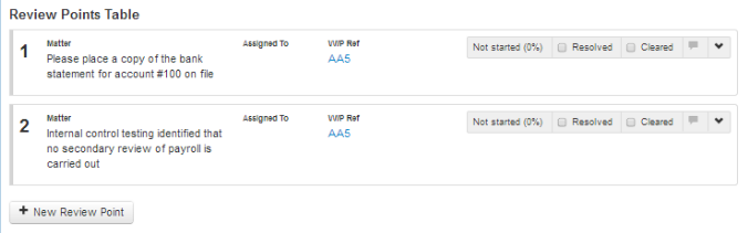 - Assign the Review Point to a member of the engagement team (this field is optional) from the drop down menu;