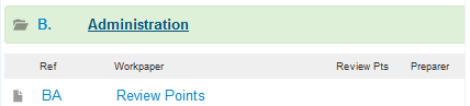 - Open the B Administration folder in the Working Paper Index;