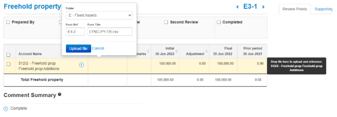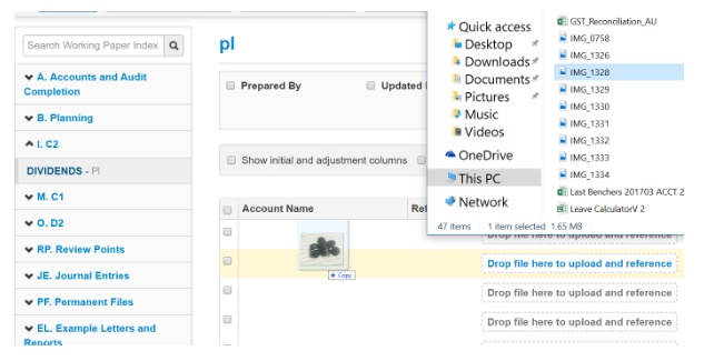 - Open the File Explorer > Select the file you want to add > Drag and drop in the Lead Schedule Summary and Lead Schedule;