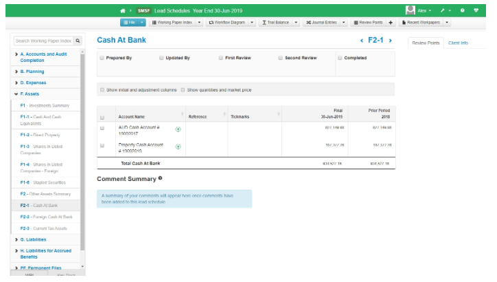 An example of the Lead Schedules included in MyWorkpapers can be seen below: