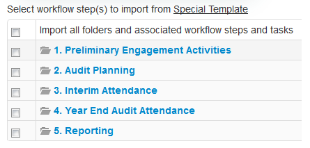 Myworkpapers allows you to import a Workflow from another client engagement file, firm template, or from an industry template.