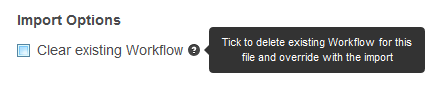 - Should you wish to clear the existing Workflow, select the Clear existing Workflow import option