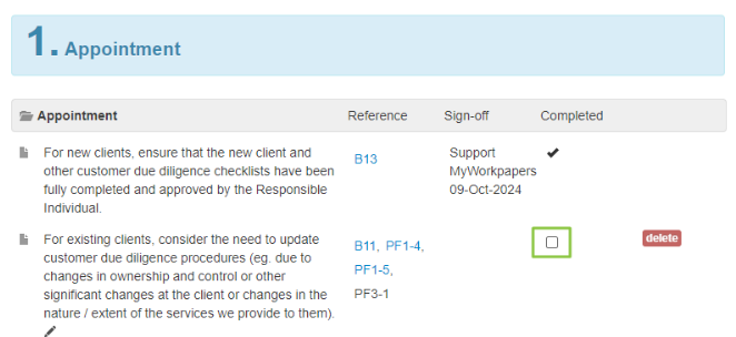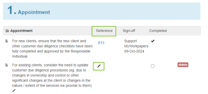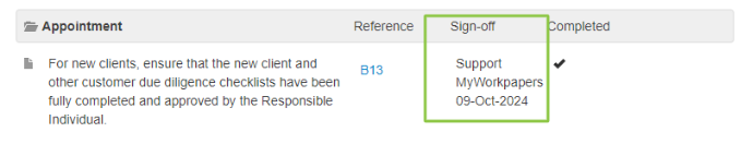 Once you have created the Workflow , your audit team is then ready to use it as their step-by-step guide to completing the audit. Each Task can be marked as completed and referenced to where the work has been completed, providing the reviewer with an easy to follow trail of the procedures completed.