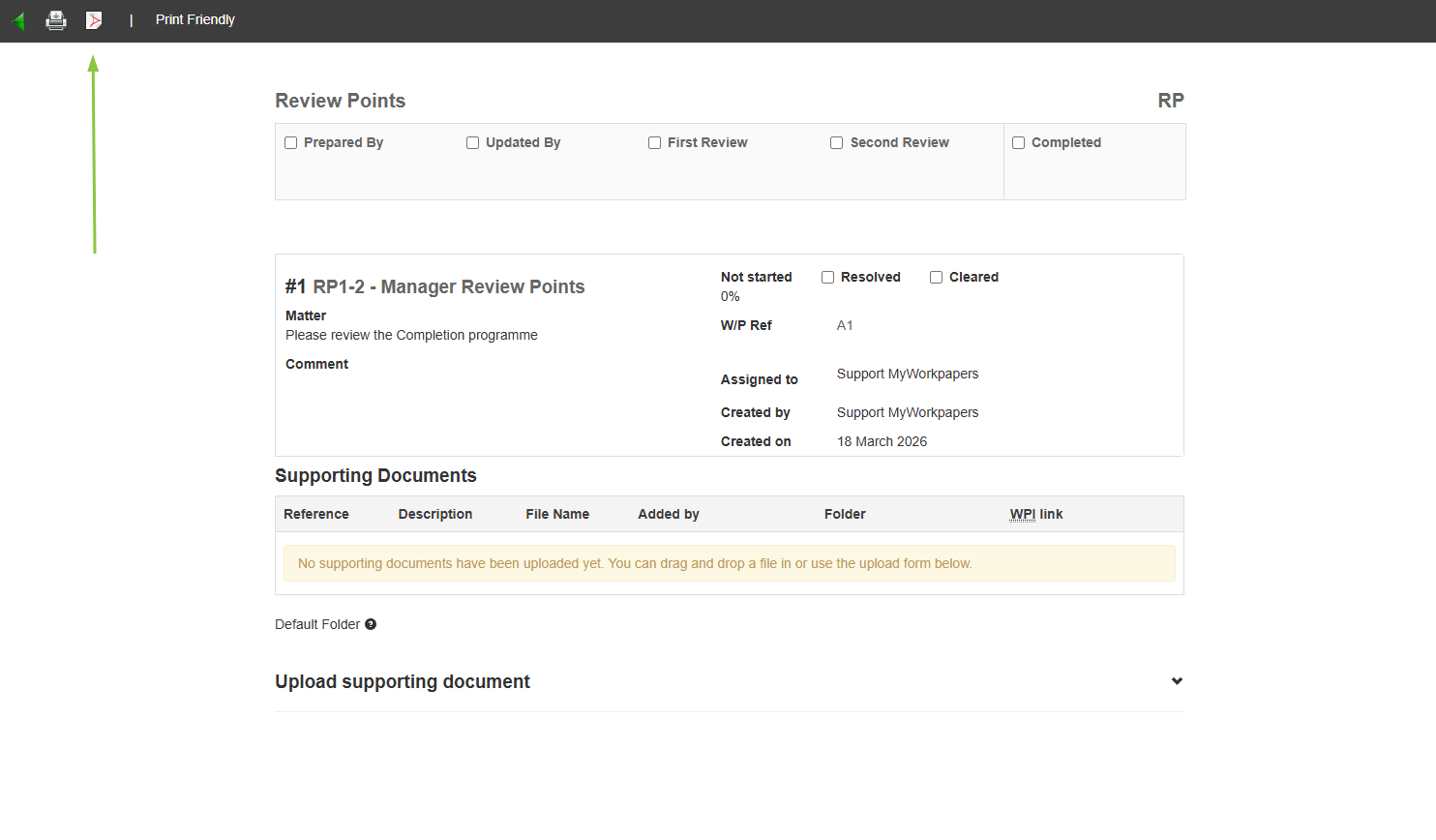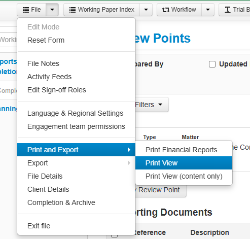 In the system we do not have a way to export Review Points into an excel document. You can however use the Print View option and save Review Points in a PDF format.