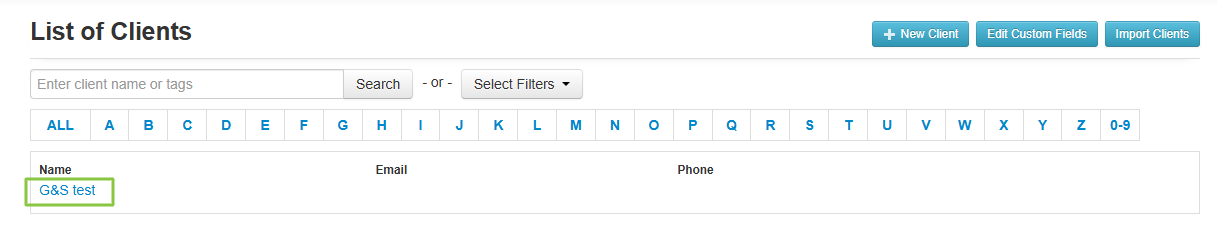 - Search for the name of your client using the search bar