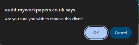 - Confirm the deletion of your client by click OK
